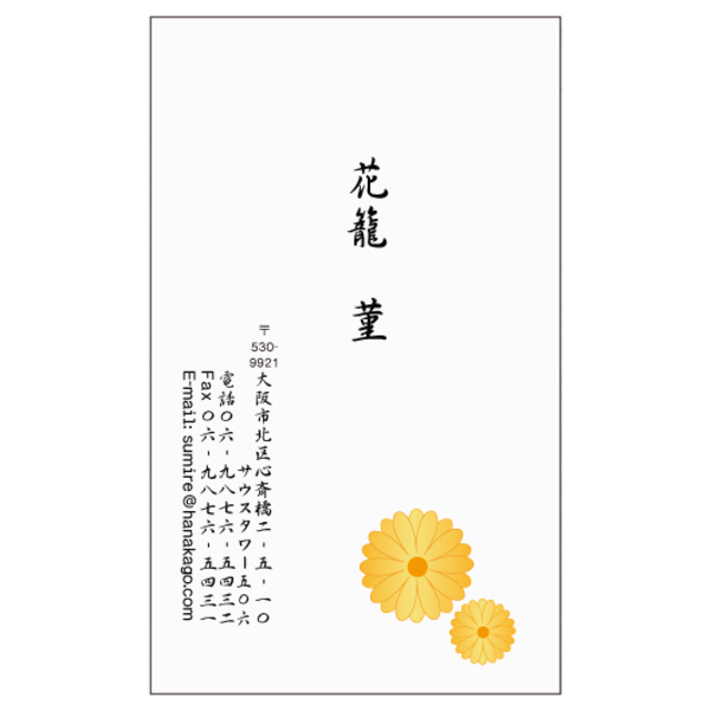 ◆用紙 マシュマロ180K 発色のいい仕上がり ◆サイズ 91mm×55mm普通名刺サイズ ◆下記より用紙の変更できます 用紙の変更はこちらから https://osharemeishi.theshop.jp/categories/7156978 ◆書体の変更 カートでは1種類の選択だけとなりますので 2種類以上ご希望の場合はカートに入れた後に表示される 購入情報入力の備考欄にご入力ください 詳しくは書体見本ページをご覧ください https://osharemeishi.theshop.jp/categories/7155022 ◆おすすめの用紙 しこくてんれい フェザーワルツ 季節の花をおりまぜた花名刺菊。 和柄、日本の絵柄が好きな方、着物に似合う和風名刺は 着付け、お茶、お花の先生や生徒さんにオススメです。