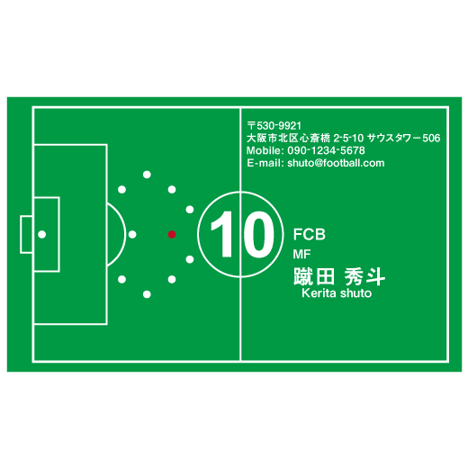 背番号もお好きな番号をお入れできます。キーパー名刺もございます。