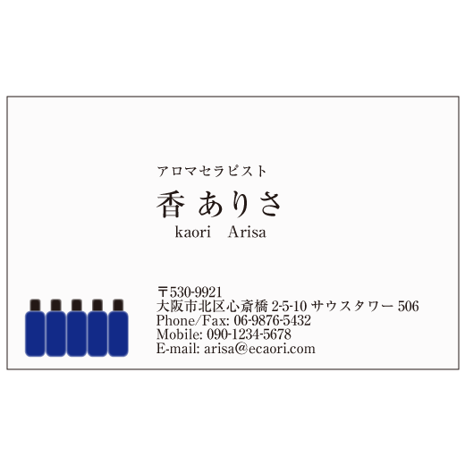 アロマボトルブルーのデザイン名刺。ショップカードにもどうぞ。