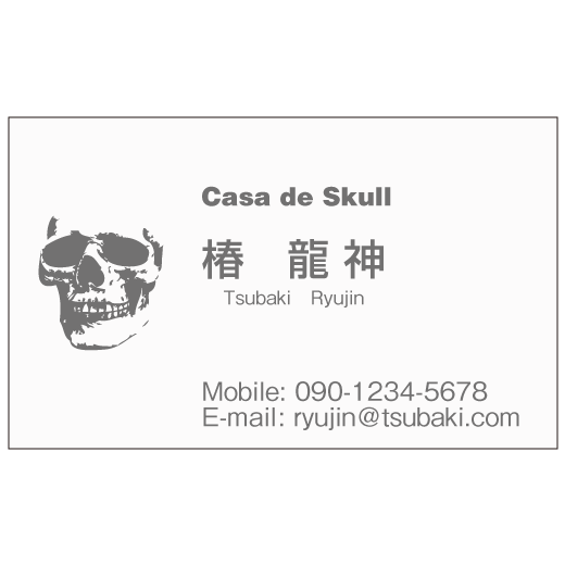 ドクロデザインの名刺、文字色違いでこちらはグレー。