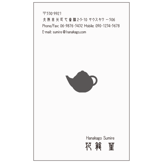 中国茶好きな方におすすめの縦型名刺のモノクロ。