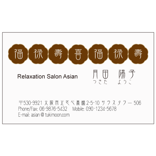 シノワズリをイメージしたアジアン名刺福禄寿喜。