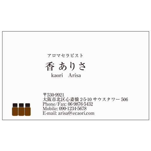 アロマオイルボトルのブラウンデザイン名刺。ショップカードにもどうぞ。