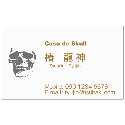 ドクロデザインの名刺、文字色違いでこちらはゴールド。