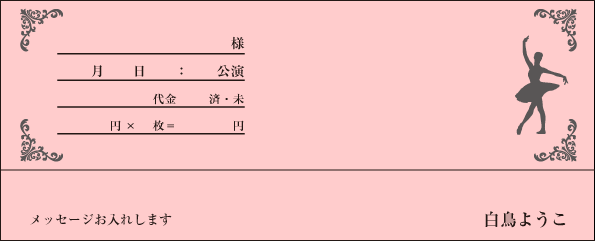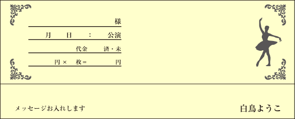 バレエ教室の発表会に名前の入ったチケット封筒はいかがですか。