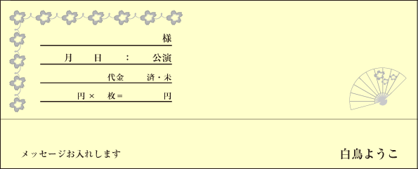 日舞や落語講談のチケットをお渡しするのにお名前の入ったチケット封筒はいかがですか。