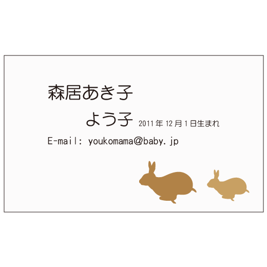 親子うさぎの名刺に赤ちゃんのお名前を入れて