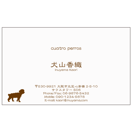 トイプードルのデザイン名刺。ワンちゃんと文字はブラウン系。
