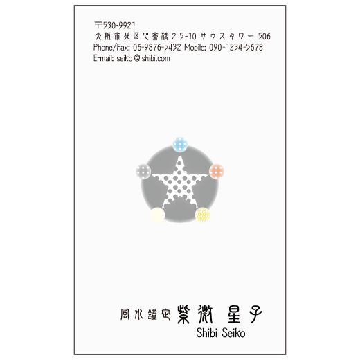 おすすめの五行をデザインしたタテ型のドット名刺です。